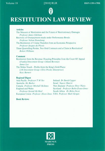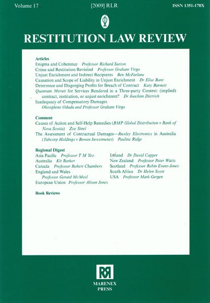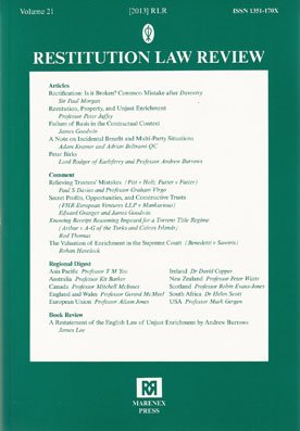 The Restitution Law Review reflects the increasing recognition and rapid development worldwide of the law of unjust enrichment and restitution. It is designed to provide a comprehensive expert information service by regional reporters from major jurisdictions in the common law and civil law worlds.The RLR includes original source material together with critical comments and articles analysing and discussing matters of practical and theoretical interest.