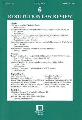 The Restitution Law Review is at the forefront in providing the latest information on the subject internationally. It has regularly stimulated developments in the subject and since its first issue has regularly been cited at the highest level in courts throughout the world.- brings together all the leading sources of the Law of Restitution worldwide